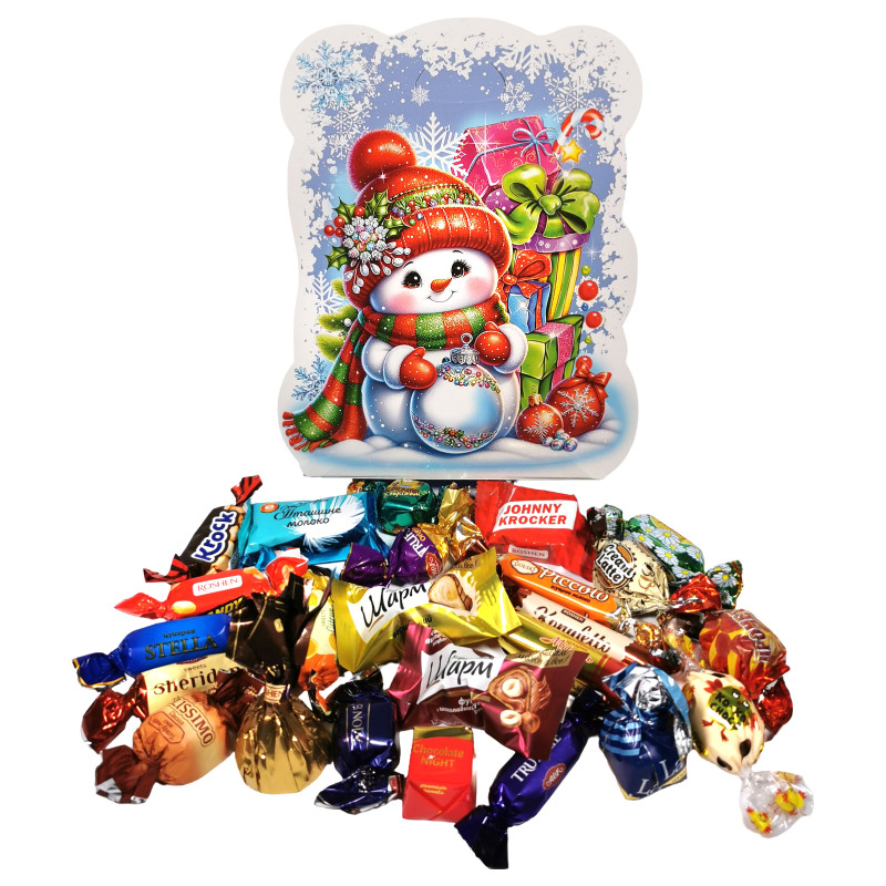 "Мон Блан з цілим лісовим горіхом" Рошен, "Королівський шарм Фундук" АВК, "Королівський шарм" АВК, "Труфальє" АВК, "Трюфель" АВК, "Шоколадна ніч" молочна АВК, "Konafetto" Рошен, "Коко чоко White" Рошен, "Mone" молочний трюфель KONTI, "Прометей з родзинками" Аметист, "Krock" з арах. пастою Рошен, "Кенді нат карам.+арахіс" Рошен, "Пташине молоко" Бісквітка, "Belissimo" Classico KONTI, "Ромашка" Бісквітка, "Шерідан" АВК, "Ведмежатко" з горіхом KONTI, "Piccolo" Golski, "Stella" Бісквітка, "Кремлате" Бісквітка, "Ля крема" Бісквітка, "Мірель" Бісквітка, "Желейка цитрус" Бісквітка, "Johnny Krocker" Рошен.