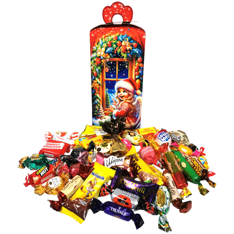 "Мон Блан з цілим лісовим горіхом" Рошен, "Червоний мак" Рошен, "Королівський шарм Фундук" АВК, "Труфальє" АВК, "Konafetto" Рошен, "Коко чоко White" Рошен, "Mone" чорний трюфель KONTI, "Золота лілія" KONTI, "Перлина Каракума" Аметист, "Кенді нат карам.+арахіс" Рошен, "Пташине молоко" зі смаком лимону Бісквітка, "Flaksi cocoa" Рошен, "Belissimo" полуниця з вершками KONTI, "Ромашка" Бісквітка, "Шерідан" АВК, "Ведмежатко" з горіхом KONTI, "Паратруфель" Golski, "Шервуд" Golski, "Кремлате" Бісквітка, "Мірель" Бісквітка, "Желейка цитрус" Бісквітка, "Johnny Krocker" Рошен, "Minky-Binky" Рошен, "Yummi's" тоффі Рошен, "Еклер" Рошен, "Корівка" Рошен, "Лоллі попс" Рошен, "Фуджента" ірис Рошен, "Шалена бджілка" Рошен, "Шоколапки ВФ" Рошен, "Несквік" Нестле.