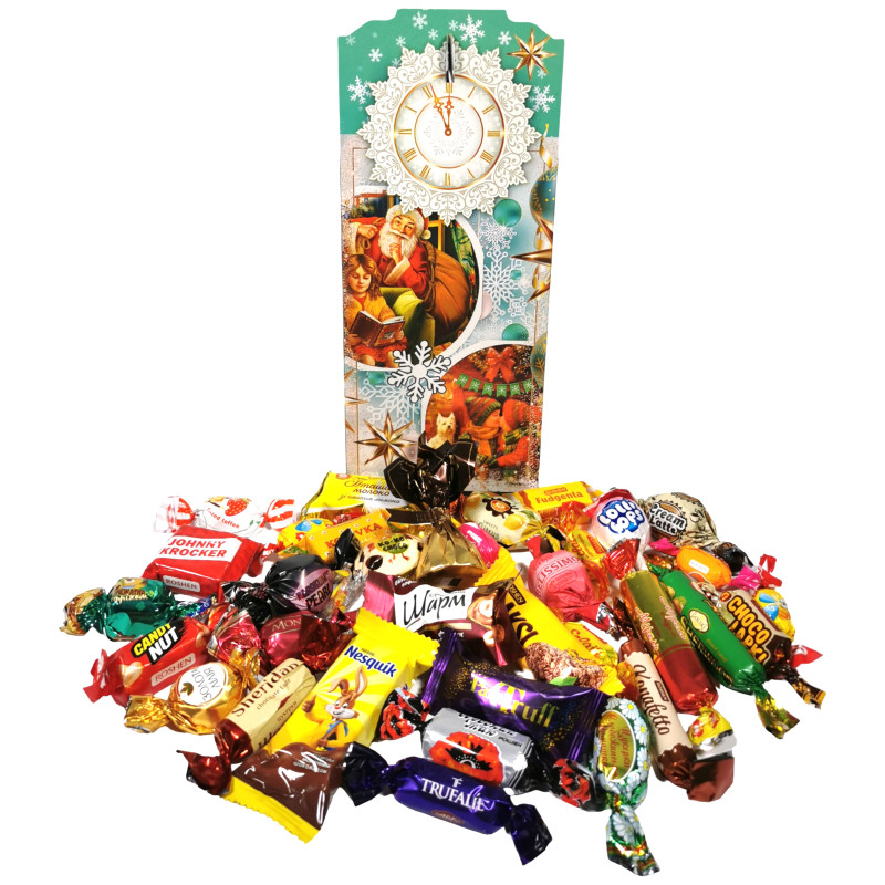 "Мон Блан з цілим лісовим горіхом" Рошен, "Червоний мак" Рошен, "Королівський шарм Фундук" АВК, "Труфальє" АВК, "Konafetto" Рошен, "Коко чоко White" Рошен, "Mone" чорний трюфель KONTI, "Золота лілія" KONTI, "Перлина Каракума" Аметист, "Кенді нат карам.+арахіс" Рошен, "Пташине молоко" зі смаком лимону Бісквітка, "Flaksi cocoa" Рошен, "Belissimo" полуниця з вершками KONTI, "Ромашка" Бісквітка, "Шерідан" АВК, "Ведмежатко" з горіхом KONTI, "Паратруфель" Golski, "Шервуд" Golski, "Кремлате" Бісквітка, "Мірель" Бісквітка, "Желейка цитрус" Бісквітка, "Johnny Krocker" Рошен, "Minky-Binky" Рошен, "Yummi's" тоффі Рошен, "Еклер" Рошен, "Корівка" Рошен, "Лоллі попс" Рошен, "Фуджента" ірис Рошен, "Шалена бджілка" Рошен, "Шоколапки ВФ" Рошен, "Несквік" Нестле.