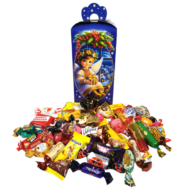 "Мон Блан з цілим лісовим горіхом" Рошен, "Червоний мак" Рошен, "Королівський шарм Фундук" АВК, "Труфальє" АВК, "Konafetto" Рошен, "Коко чоко White" Рошен, "Mone" чорний трюфель KONTI, "Золота лілія" KONTI, "Перлина Каракума" Аметист, "Кенді нат карам.+арахіс" Рошен, "Пташине молоко" зі смаком лимону Бісквітка, "Flaksi cocoa" Рошен, "Belissimo" полуниця з вершками KONTI, "Ромашка" Бісквітка, "Шерідан" АВК, "Ведмежатко" з горіхом KONTI, "Паратруфель" Golski, "Шервуд" Golski, "Кремлате" Бісквітка, "Мірель" Бісквітка, "Желейка цитрус" Бісквітка, "Johnny Krocker" Рошен, "Minky-Binky" Рошен, "Yummi's" тоффі Рошен, "Еклер" Рошен, "Корівка" Рошен, "Лоллі попс" Рошен, "Фуджента" ірис Рошен, "Шалена бджілка" Рошен, "Шоколапки ВФ" Рошен, "Несквік" Нестле.