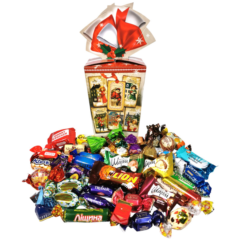 "Мон Блан з цілим лісовим горіхом" Рошен, "Мон Блан" крем праліне з подр. ліс. гор. Рошен, "Королівський шарм Фундук" АВК, "Королівський шарм" АВК, "Труфальє" АВК, "Трюфель" АВК, "Шоколадна ніч" молочна АВК, "Konafetto" Рошен, "Коко чоко White" Рошен, "Ліщина" Рошен, "Mone" молочний трюфель KONTI, "Mone" чорний трюфель KONTI, "Золота лілія" KONTI, "Диво Коконат" Аметист, "Прометей з родзинками" Аметист, "Чорнослив з горіхом" Аметист, "Krock" з арах. пастою Рошен, "Кенді нат карам.+арахіс" Рошен, "Пташине молоко" Бісквітка, "Belissimo" Classico KONTI, "Ромашка" Бісквітка, "Соренто" Рошен, "Шерідан" АВК, "Ведмежатко" з горіхом KONTI, "Piccolo" Golski, "Crispini" Golski, "Stella" Бісквітка, "Кремлате" Бісквітка, "Ля крема" Бісквітка, "Мірель" Бісквітка, "Регіна" какао+мілк Бісквітка, "Желейка цитрус" Бісквітка, "Johnny Krocker" Рошен, "Лайон" Нестле.