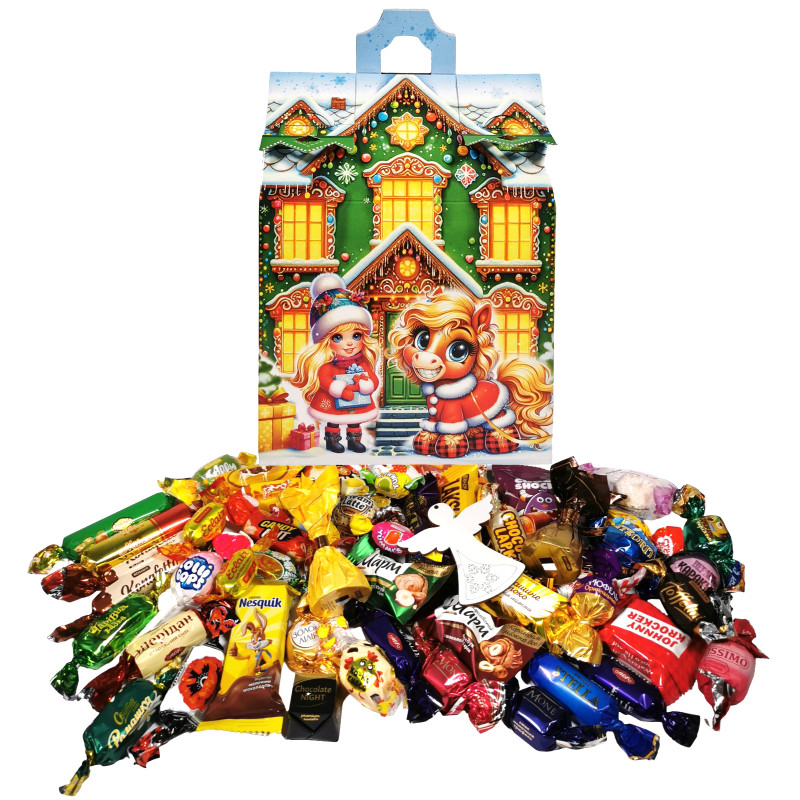 | Вміст подарунку | Шоколадний, іриски |