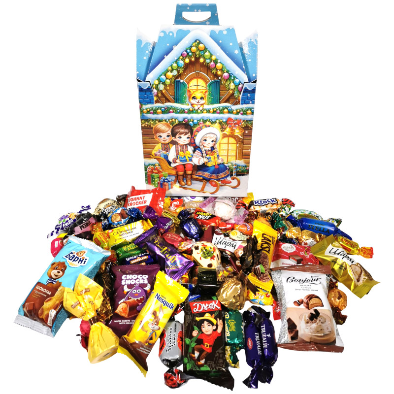 | Вміст подарунку | Шоколадний, іриски |