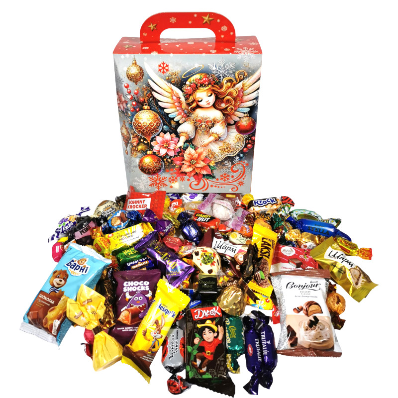 "Мон Блан з цілим лісовим горіхом" Рошен, "Мон Блан" з шоколадом і сезамом Рошен, "Червоний мак" Рошен, "Королівський шарм Фундук" АВК, "Королівський шарм" АВК, "Труфальє" АВК, "Трюфель" АВК, "Шоколадна ніч" АВК, "Mone" молочний трюфель KONTI, "Konafetto" Рошен, "Коко чоко White" Рошен, "Mone" чорний трюфель KONTI, "Золота лілія" KONTI, "Пташка мармелашка" ТМ ЖАКО, "Франческа" з цілим мигдалем ТМ Балу, "Ромашка" Світоч, "Метеорит" Аметист, "Перлина Каракума" Аметист, "Krock" з арах. пастою Рошен, "Кенді нат карам.+арахіс" Рошен, "Пташине молоко" зі смаком лимону Бісквітка, "Flaksi cocoa" Рошен, "Belissimo" полуниця з вершками KONTI, "Ромашка" Бісквітка, "Шерідан" АВК, "Чарівна казка" Бісквітка, "Ведмежатко" з горіхом KONTI, "Паратруфель" Golski, "Шервуд" Golski, "Stella" Бісквітка, "Кремлате" Бісквітка, "Мірель" Бісквітка, "Galaretka" Рошен, "Желейка цитрус" Бісквітка, "Johnny Krocker" Рошен, "Джек" вафля KONTI, "Choco Shocks" вафля Polus, "CoffeLike" Рошен, "Minky-Binky" Рошен, "Toffelini" Рошен, "Yummi's" тоффі Рошен, "Джеллі" Рошен, "Еклер" Рошен, "Карамель" молочна Бісквітка, "Корівка" Рошен, "Лоллі попс" Рошен, "Фуджента" ірис Рошен, "Шалена бджілка" Рошен, "Шоколапки ВФ" Рошен, "Несквік" Нестле, "Bonjour" KONTI 29 г, "Бісквіт БАРНІ" 30 г.