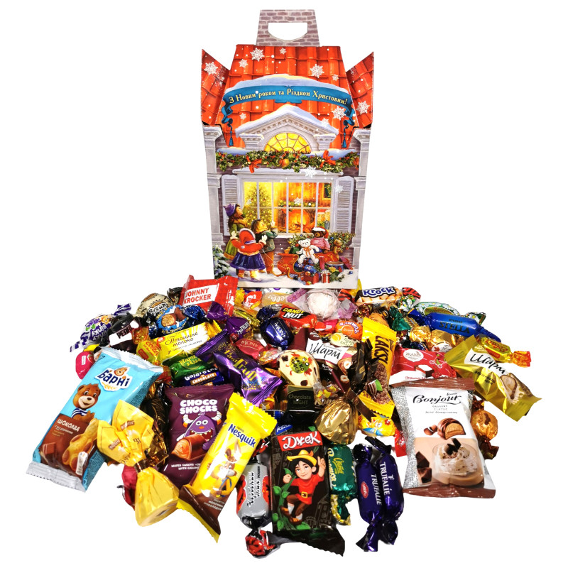 "Мон Блан з цілим лісовим горіхом" Рошен, "Мон Блан" з шоколадом і сезамом Рошен, "Червоний мак" Рошен, "Королівський шарм Фундук" АВК, "Королівський шарм" АВК, "Труфальє" АВК, "Трюфель" АВК, "Шоколадна ніч" АВК, "Mone" молочний трюфель KONTI, "Konafetto" Рошен, "Коко чоко White" Рошен, "Mone" чорний трюфель KONTI, "Золота лілія" KONTI, "Пташка мармелашка" ТМ ЖАКО, "Франческа" з цілим мигдалем ТМ Балу, "Ромашка" Світоч, "Метеорит" Аметист, "Перлина Каракума" Аметист, "Krock" з арах. пастою Рошен, "Кенді нат карам.+арахіс" Рошен, "Пташине молоко" зі смаком лимону Бісквітка, "Flaksi cocoa" Рошен, "Belissimo" полуниця з вершками KONTI, "Ромашка" Бісквітка, "Шерідан" АВК, "Чарівна казка" Бісквітка, "Ведмежатко" з горіхом KONTI, "Паратруфель" Golski, "Шервуд" Golski, "Stella" Бісквітка, "Кремлате" Бісквітка, "Мірель" Бісквітка, "Galaretka" Рошен, "Желейка цитрус" Бісквітка, "Johnny Krocker" Рошен, "Джек" вафля KONTI, "Choco Shocks" вафля Polus, "CoffeLike" Рошен, "Minky-Binky" Рошен, "Toffelini" Рошен, "Yummi's" тоффі Рошен, "Джеллі" Рошен, "Еклер" Рошен, "Карамель" молочна Бісквітка, "Корівка" Рошен, "Лоллі попс" Рошен, "Фуджента" ірис Рошен, "Шалена бджілка" Рошен, "Шоколапки ВФ" Рошен, "Несквік" Нестле, "Bonjour" KONTI 29 г, "Бісквіт БАРНІ" 30 г.