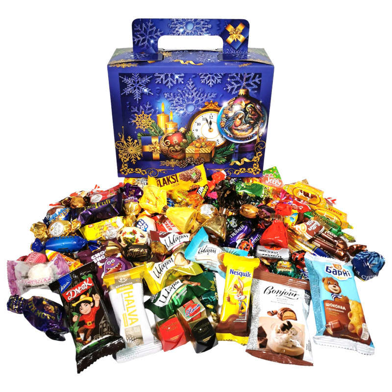 "Мон Блан з цілим лісовим горіхом" Рошен, "Мон Блан" з карамелізов. мигд. Рошен, "Мон Блан" з шоколадом і сезамом Рошен, "Червоний мак" Рошен, "Королівський шарм Мигдаль" АВК, "Королівський шарм Фундук" АВК, "Королівський шарм" АВК, "Труфальє" АВК, "Трюфель" АВК, "Шоколадна ніч" АВК, "Шоколадна ніч" молочна АВК, "Konafetto" Рошен, "Коко чоко White" Рошен, "Mone" молочний трюфель KONTI, "Mone" чорний трюфель KONTI, "Золота лілія" KONTI, "Пташка мармелашка" ТМ ЖАКО, "Франческа" з цілим мигдалем ТМ Балу, "Ромашка" Світоч, "Метеорит" Аметист, "Перлина Каракума" Аметист, "Чорнослив з горіхом" Аметист, "Krock" з арах. пастою Рошен, "Кенді нат карам.+арахіс" Рошен, "Пташине молоко" зі смаком лимону Бісквітка, "Flaksi cocoa" Рошен, "Belissimo" полуниця з вершками KONTI, "Ромашка" Бісквітка, "Шерідан" АВК, "Чарівна казка" Бісквітка, "Ведмежатко" з горіхом KONTI, "Паратруфель" Golski, "Шервуд" Golski, "Stella" Бісквітка, "Кремлате" Бісквітка, "Ля крема" Бісквітка, "Мірель" Бісквітка, "Ніколь крем брюле" Бісквітка, "Ніколь" Бісквітка, "Galaretka" Рошен, "Желейка цитрус" Бісквітка, "Johnny Krocker" Рошен, "Джек" вафля KONTI, "Choco Shocks" вафля Polus, "CoffeLike" Рошен, "Minky-Binky" Рошен, "Toffelini" Рошен, "Yummi's" тоффі Рошен, "Батер мілк" Рошен, "Джеллі" Рошен, "Еклер" Рошен, "Карамель" молочна Бісквітка, "Корівка" Рошен, "Лоллі попс" Рошен, "Фуджента" ірис Рошен, "Шалена бджілка" Рошен, "Шипучка" Рошен, "Шоколапки ВФ" Рошен, "Несквік" Нестле, "Bonjour" KONTI 29 г, "Бісквіт БАРНІ" 30 г, "Халва" ваніль Золотий Вік.