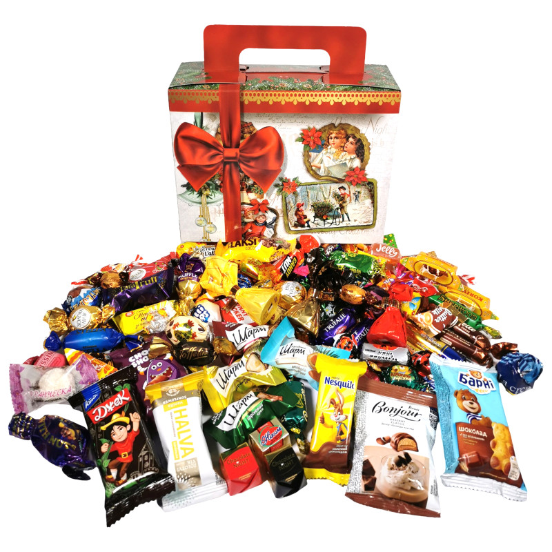 "Мон Блан з цілим лісовим горіхом" Рошен, "Мон Блан" з карамелізов. мигд. Рошен, "Мон Блан" з шоколадом і сезамом Рошен, "Червоний мак" Рошен, "Королівський шарм Мигдаль" АВК, "Королівський шарм Фундук" АВК, "Королівський шарм" АВК, "Труфальє" АВК, "Трюфель" АВК, "Шоколадна ніч" АВК, "Шоколадна ніч" молочна АВК, "Konafetto" Рошен, "Коко чоко White" Рошен, "Mone" молочний трюфель KONTI, "Mone" чорний трюфель KONTI, "Золота лілія" KONTI, "Пташка мармелашка" ТМ ЖАКО, "Франческа" з цілим мигдалем ТМ Балу, "Ромашка" Світоч, "Метеорит" Аметист, "Перлина Каракума" Аметист, "Чорнослив з горіхом" Аметист, "Krock" з арах. пастою Рошен, "Кенді нат карам.+арахіс" Рошен, "Пташине молоко" зі смаком лимону Бісквітка, "Flaksi cocoa" Рошен, "Belissimo" полуниця з вершками KONTI, "Ромашка" Бісквітка, "Шерідан" АВК, "Чарівна казка" Бісквітка, "Ведмежатко" з горіхом KONTI, "Паратруфель" Golski, "Шервуд" Golski, "Stella" Бісквітка, "Кремлате" Бісквітка, "Ля крема" Бісквітка, "Мірель" Бісквітка, "Ніколь крем брюле" Бісквітка, "Ніколь" Бісквітка, "Galaretka" Рошен, "Желейка цитрус" Бісквітка, "Johnny Krocker" Рошен, "Джек" вафля KONTI, "Choco Shocks" вафля Polus, "CoffeLike" Рошен, "Minky-Binky" Рошен, "Toffelini" Рошен, "Yummi's" тоффі Рошен, "Батер мілк" Рошен, "Джеллі" Рошен, "Еклер" Рошен, "Карамель" молочна Бісквітка, "Корівка" Рошен, "Лоллі попс" Рошен, "Фуджента" ірис Рошен, "Шалена бджілка" Рошен, "Шипучка" Рошен, "Шоколапки ВФ" Рошен, "Несквік" Нестле, "Bonjour" KONTI 29 г, "Бісквіт БАРНІ" 30 г, "Халва" ваніль Золотий Вік.